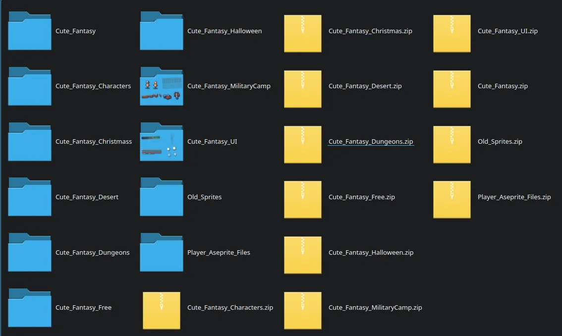 Because of having all those assets, you have a lot of things to do. You have to be more focused when at any time you could decide to add graphics for anything in the folders. You could do a dungeon, a bird, and an alien, and then sit back asking, "Well what was I doing again?"